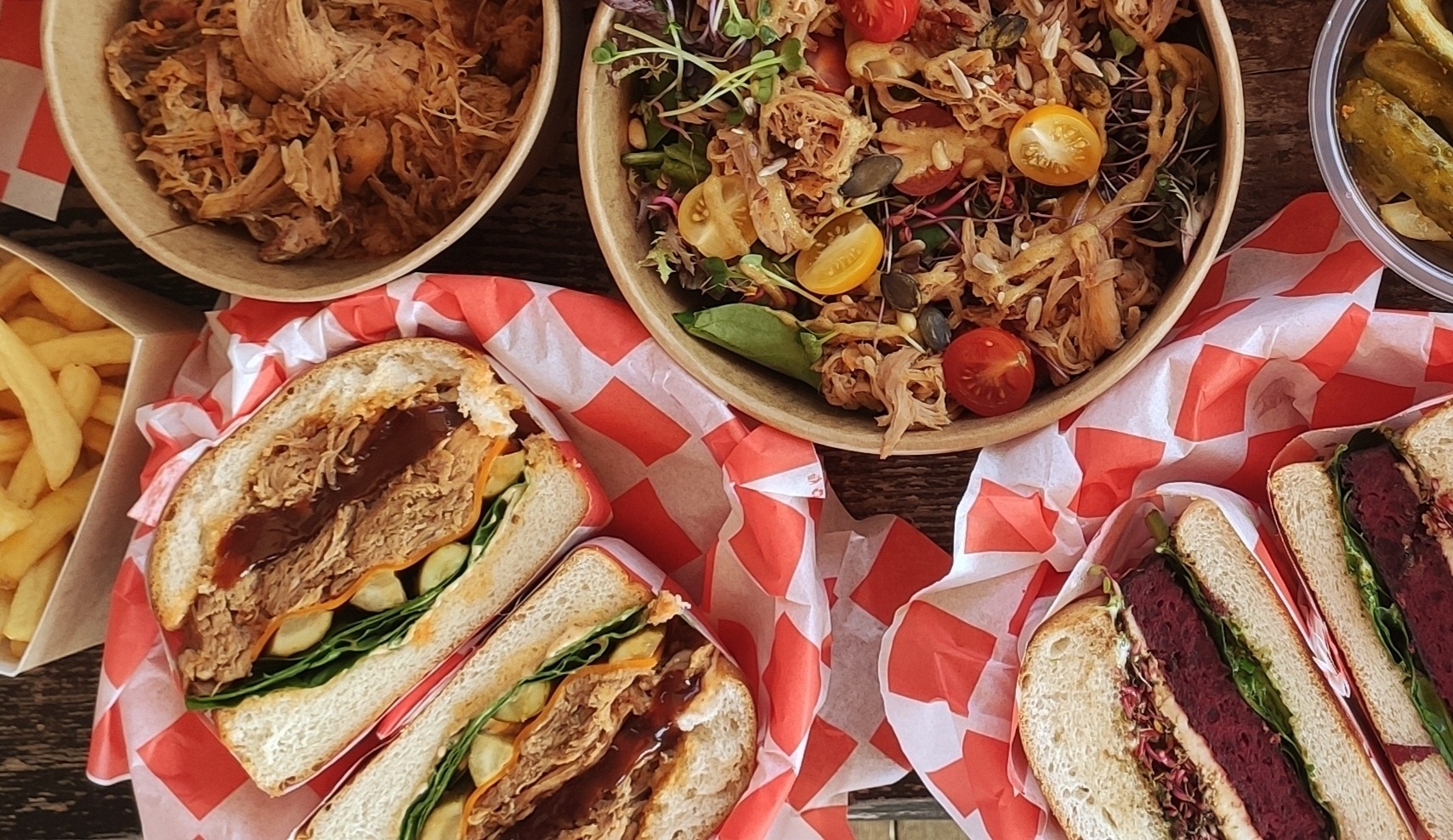100% wołowiny oraz nasz Pulled pork, pyszna buła, autorskie sosy - to właśnie to nas wyróżnia na tle innych burgerowni w mieście!